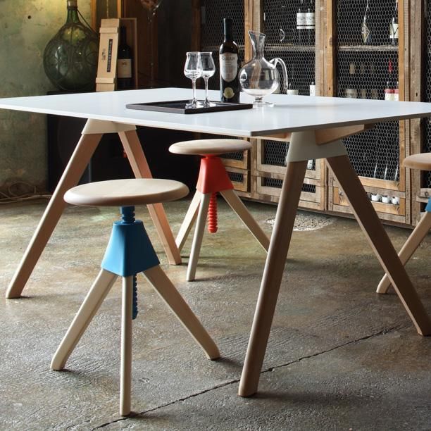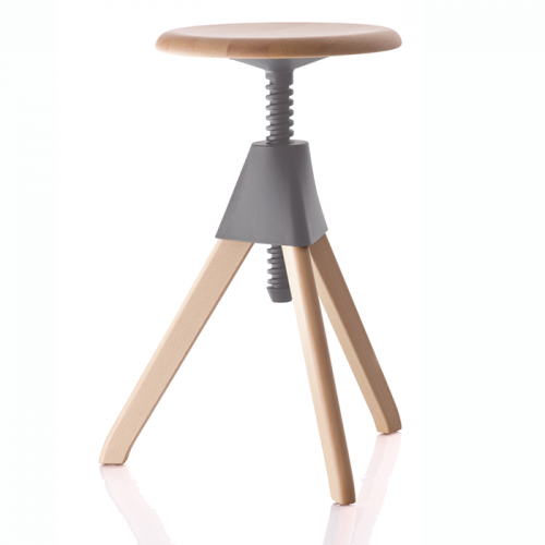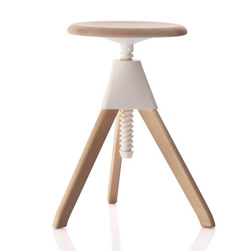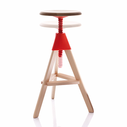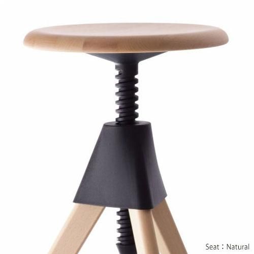 コンスタンティン・グルチッチがワークスタイルに革新を吹き込む新たな仕掛けは、こんなにキュートな2対のスツール。例のネコとネズミのコミカルな物語を連想する、愛嬌たっぷりの佇まい。座面はネジのように回転させることで、16cmもの高さ調節が可能です。この樹脂は非常に滑らかに仕上げられていて、スムーズに上下昇降させることができるので、女性や子どもでも扱いが簡単です。